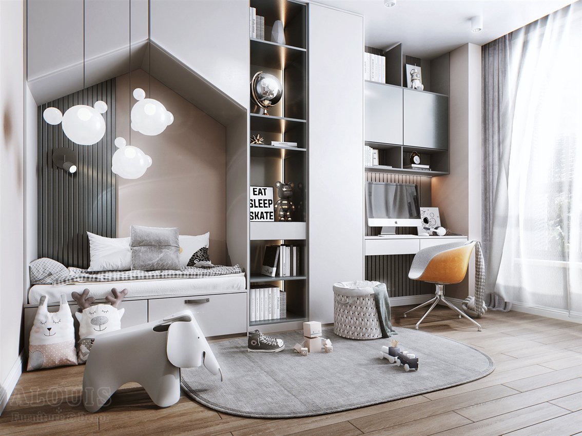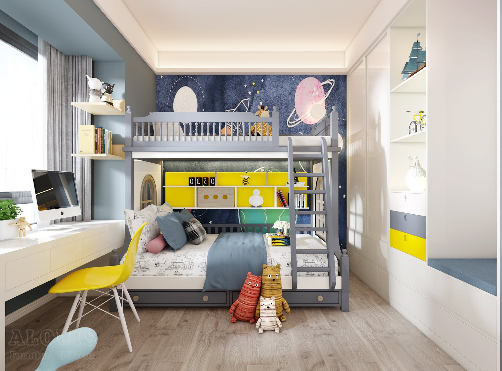 Dưới đây là các mẫu thiết kế nội thất phòng ngủ cho bé trai và nội thất phòng ngủ cho bé gái mà bạn có thể lựa chọn để thi công nội thất phòng ngủ cho con của mình: