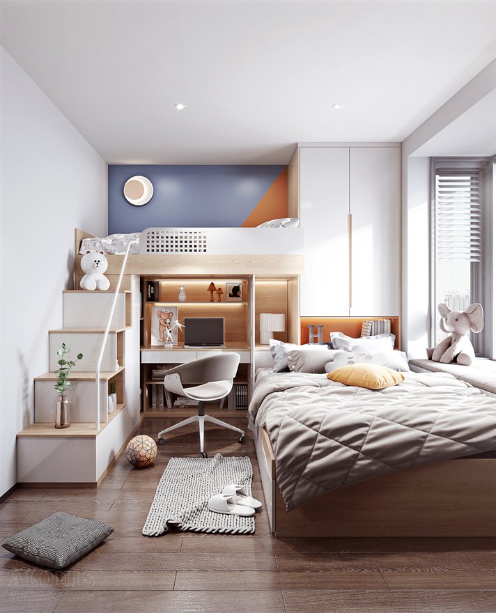 Dưới đây là các mẫu thiết kế nội thất phòng ngủ cho bé trai và nội thất phòng ngủ cho bé gái mà bạn có thể lựa chọn để thi công nội thất phòng ngủ cho con của mình:
