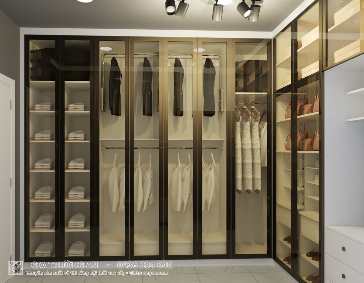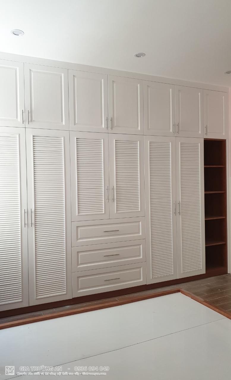 - Tủ quần áo âm tường: Thiết kế cửa trượt hoặc cửa mở, tận dụng tối đa không gian phòng ngủ.