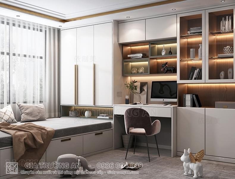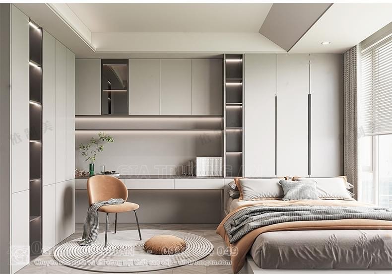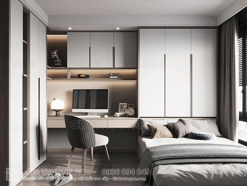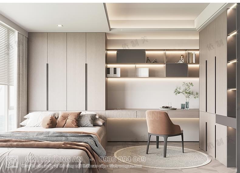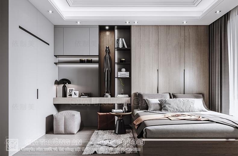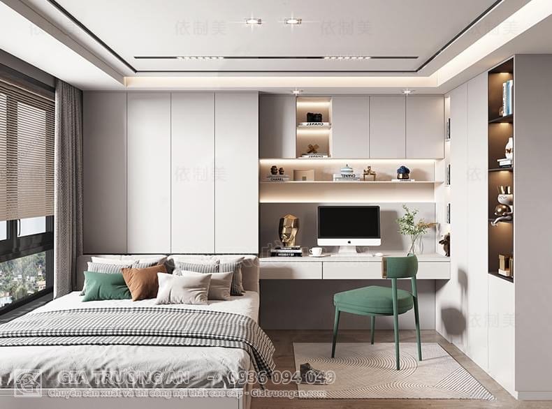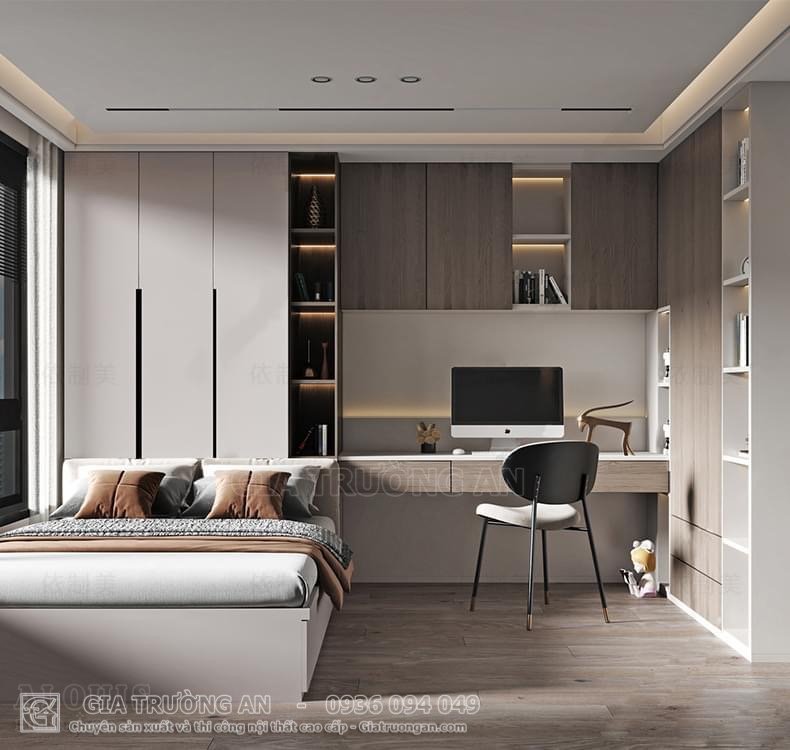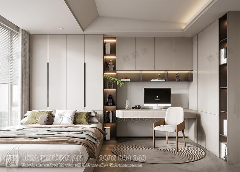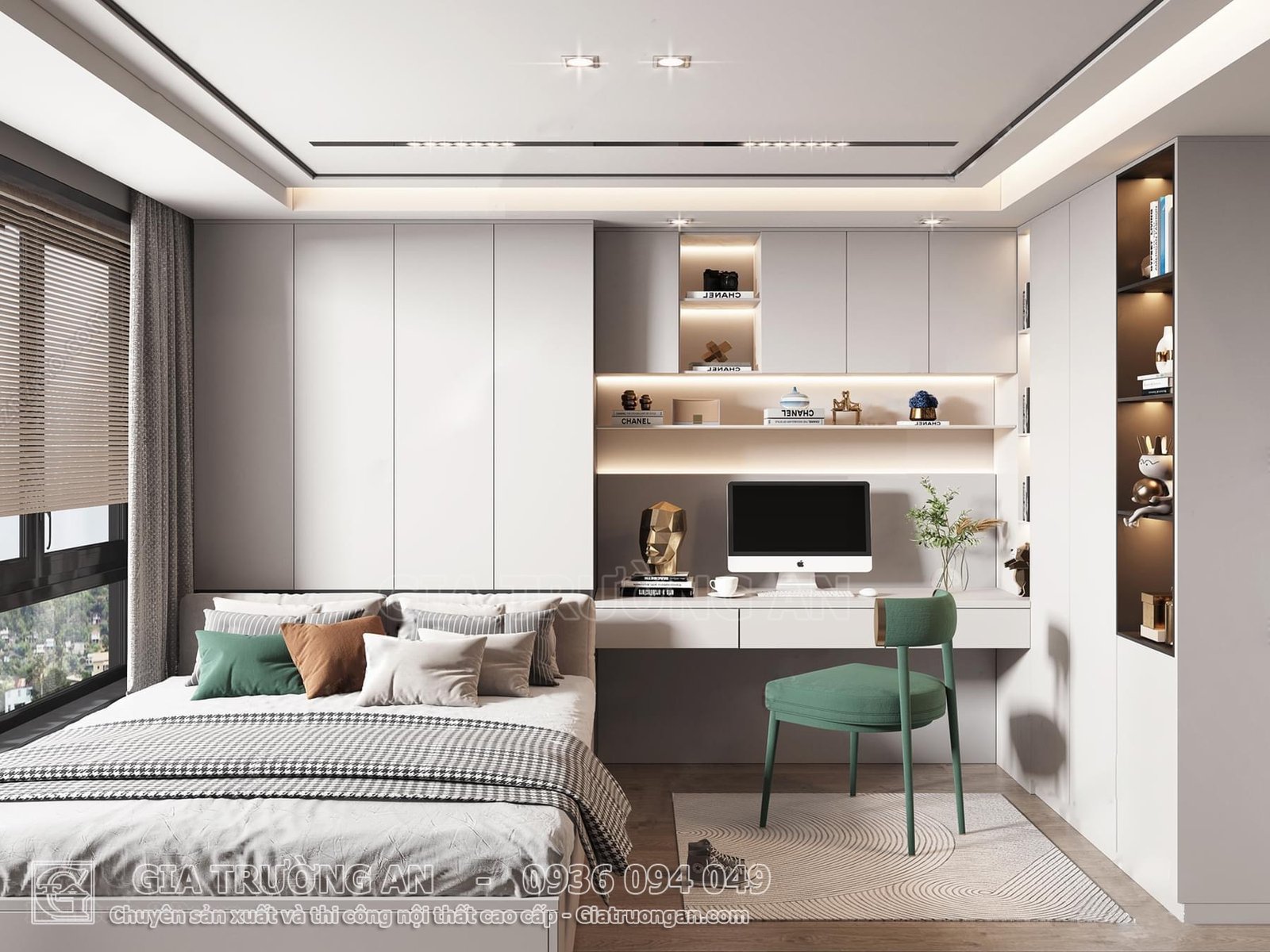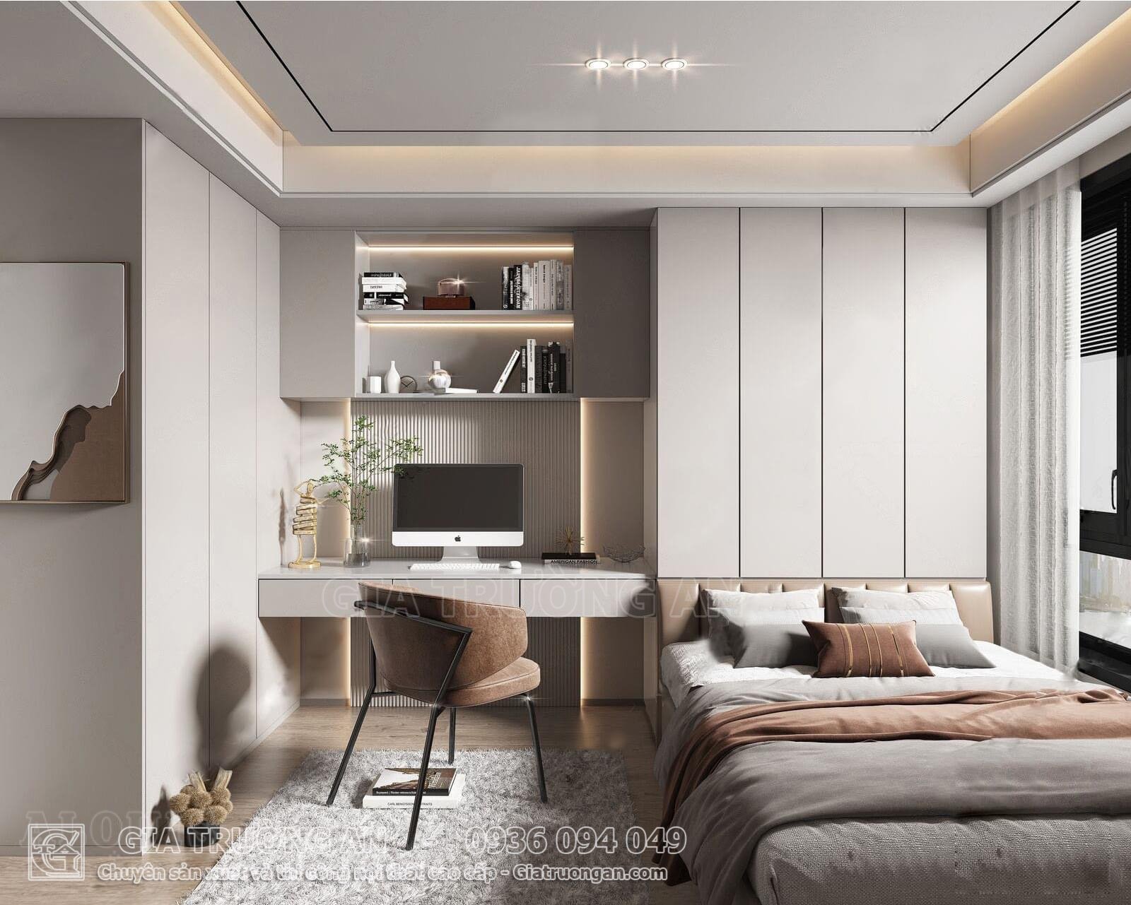 Với sự phát triển của kinh tế và công nghệ, nhu cầu làm việc tại nhà ngày càng tăng cao. Điều này đòi hỏi các chuyên gia thiết kế nội thất phải đưa ra các giải pháp phù hợp để thích nghi với xu hướng này. Thiết kế phòng ngủ có bàn làm việc và kệ sách kế bên đầu giường là một trong những giải pháp tiện lợi và thực tiễn nhất hiện nay.